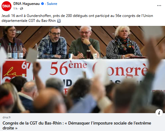 DNA - Congrès de la CGT du Bas-Rhin : « Démasquer l’imposture sociale de l’extrême droite »